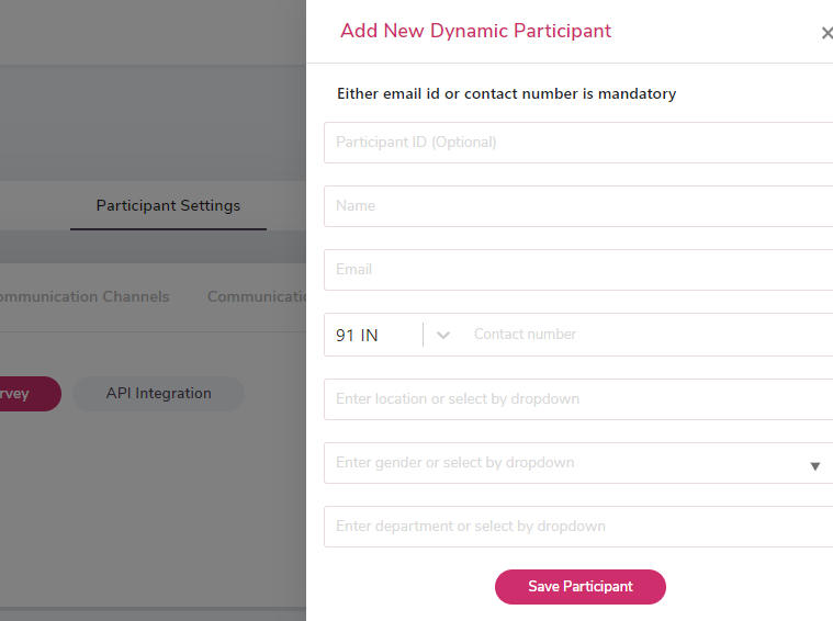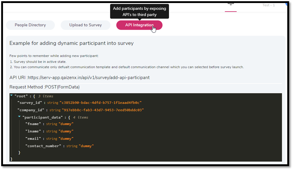 Users can also add new dynamic participants to the survey using API Integration.