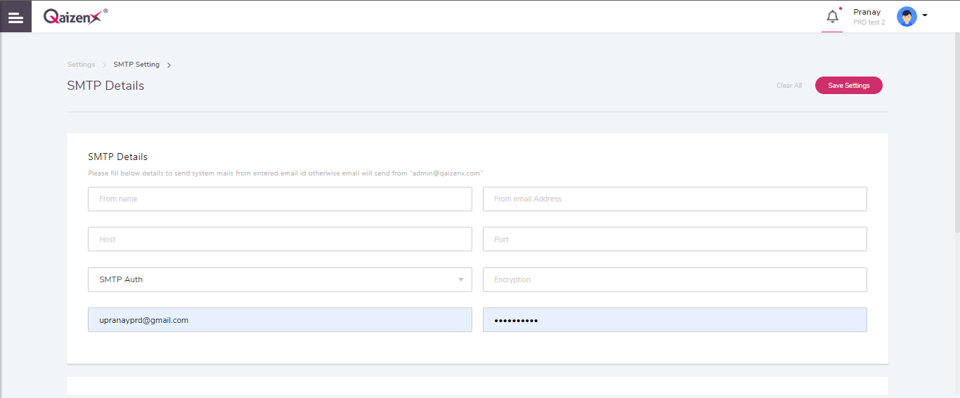 To Configure SMTP(Simple Mail Transfer Protocol) Settings, users need to put in all their required SMTP details in all the sections and then click on the save settings button to save and use those settings.