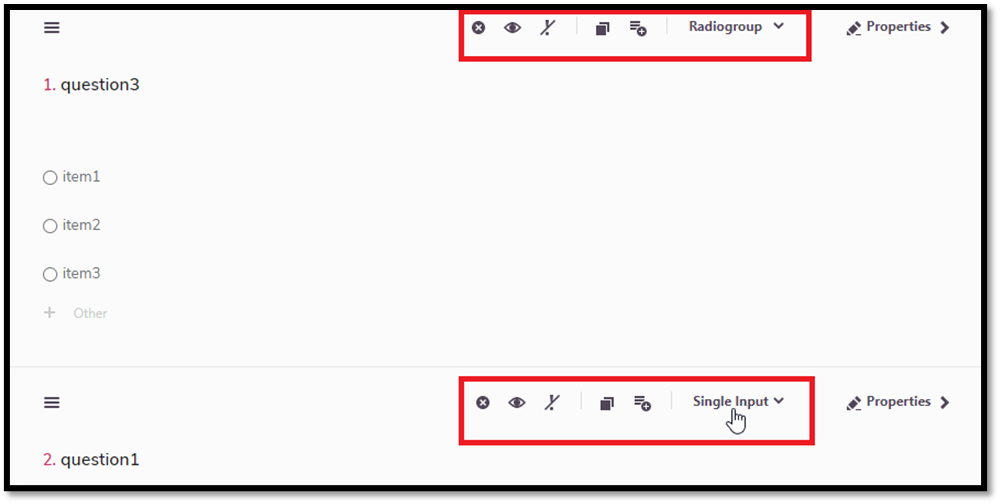 The last setting option is specific to a statement type. For instance, a Radio Button statement type shows a dropdown which includes different alternatives for the question options like checkbox, image picker, or radiogroup.  On the other hand, a Single Line Text shows two options single input and comment. As per the requirement, user can choose any alternative and the options of the statement types will be modified accordingly.